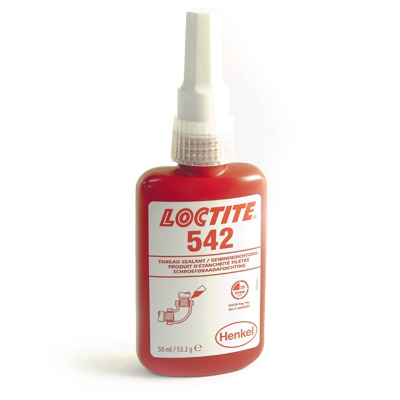 LOCTITE® 542 wird für das Sichern und Dichten von Rohren und Anschlussstücken und anderen zylindrischen Verbindungen aus Metallen eingesetzt. Das Produkt härtet unter Luftabschluss zwischen enganliegenden Metallflächen aus und verhindert selbständiges Losdrehen und Undichtheiten durch Stöße und Vibrationen. Durch sein thixotropes Verhalten verringert LOCTITE 542 das Abwandern des flüssigen Produktes nach der Auftragung auf das Teil.